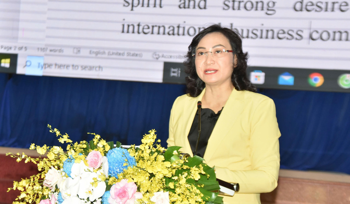 Thứ trưởng Bộ Công Thương Phan Thị Thắng phát biểu tại hội nghị. (Ảnh: Hoàng Thọ)