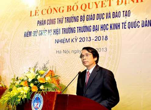 Bộ trưởng cũng nói rõ vấn đề ưu tiên hàng đầu của bộ là sự ổn định và phát triển của Trường ĐH Kinh tế quốc dân nên Ban cán sự Đảng Bộ GD-ĐT đã bàn bạc và được sự nhất trí cao của Thành ủy, Đảng ủy khối các trường ĐH, CĐ Hà Nội phân công PGS.TS Phạm Mạnh Hùng - thứ trưởng Bộ GD-ĐT - kiêm nhiệm hiệu trưởng nhà trường nhiệm kỳ 2013-2018.