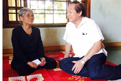 | Thứ trưởng Trương Minh Tuấn đến thăm và tặng quà các gia đình có công với cách mạng. |