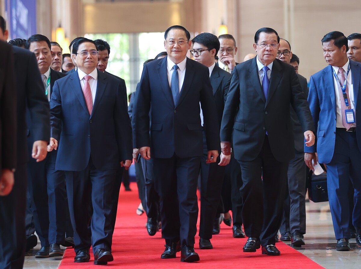 Thủ tướng Chính phủ Phạm Minh Chính, Thủ tướng Lào Sonexay Siphandone và Thủ tướng Campuchia Hun Sen nhất trí đẩy mạnh hợp tác kết nối ba nền kinh tế. (Ảnh: VGP)