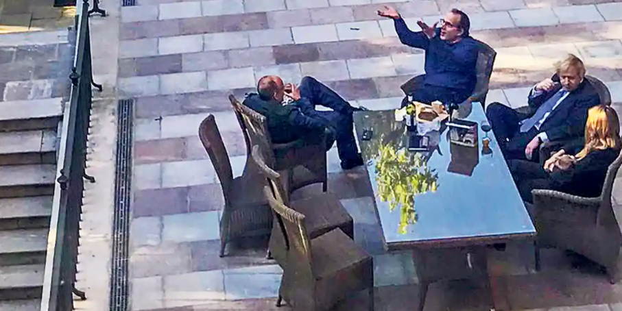 Thủ tướng Anh Boris Johnson cùng phu nhân và 17 nhân viên đã bị chụp ảnh ngồi bên bàn bày rượu vang và pho mát trong khu vườn ở phố Downing, hồi tháng 5/2020. Bức ảnh đặt ra câu hỏi xung quanh việc văn phòng thủ tướng nói họ chỉ tham gia vào một "cuộc họp công việc" trong thời gian phong tỏa.