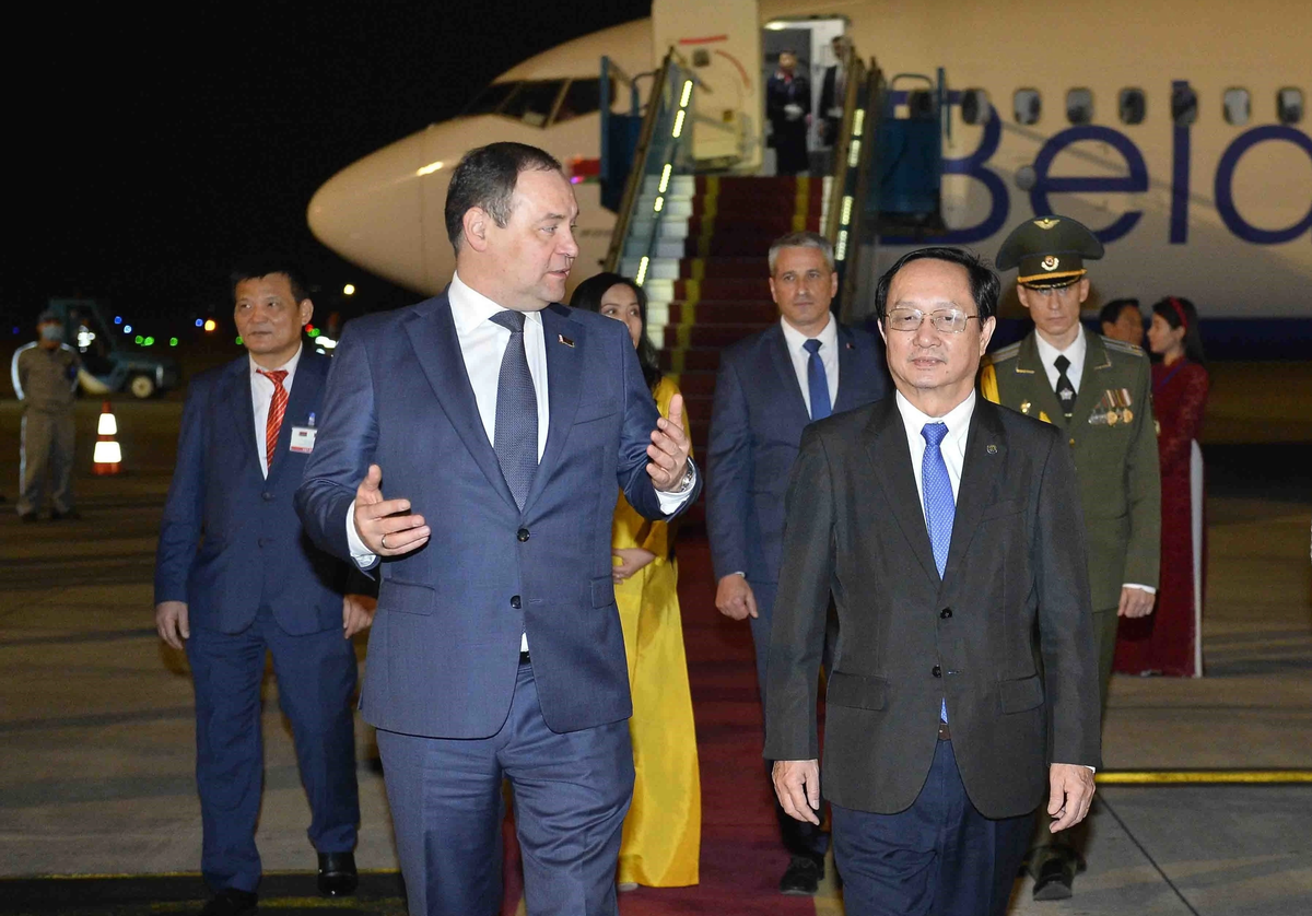 Chiều tối 6/12, Thủ tướng Belarus Roman Golovchenko và Đoàn Đại biểu Cấp cao Chính phủ Belarus đến Hà Nội, bắt đầu chuyến thăm chính thức Việt Nam từ ngày 6 đến 9/12, theo lời mời của Thủ tướng Phạm Minh Chính.
