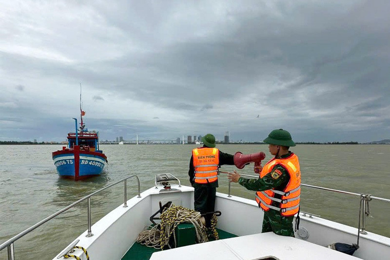 Lực lượng Biên phòng TP Đà Nẵng thông báo tàu thuyền về nơi tránh trú an toàn. (Ảnh: VGP)