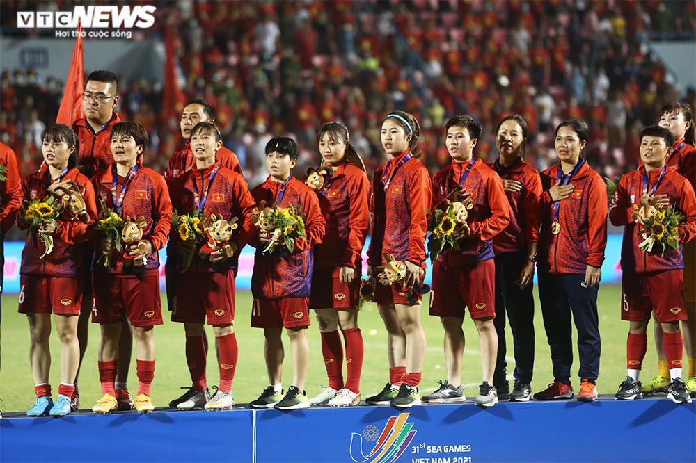 Đội tuyển bóng đá nữ Việt Nam bảo vệ thành công chức vô địch SEA Games. (Ảnh: Hồng Nam)