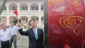 Thủ tướng đánh trống báo hiệu năm học mới đã bắt đầu (ảnh: N.D)