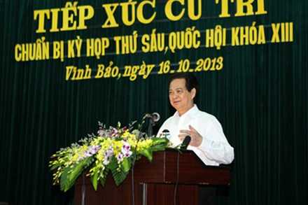 Đây là ý kiến trả lời cử tri của Thủ tướng Nguyễn Tấn Dũng trong buổi tiếp xúc cử tri chiều 16/10 tại huyện Vĩnh Bảo (Hải Phòng) nhằm chuẩn bị cho kỳ họp thứ 6 Quốc hội khóa XIII