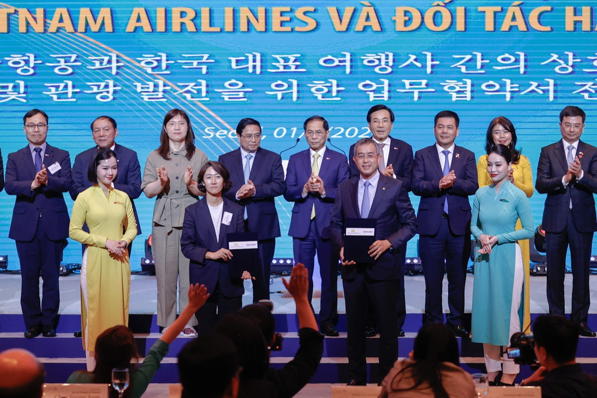Trong lần này, Hãng hàng không Quốc gia Việt Nam Vietnam Airline trao đổi 4 biên bản ghi nhớ hợp tác du lịch với 4 đối tác Hàn Quốc.