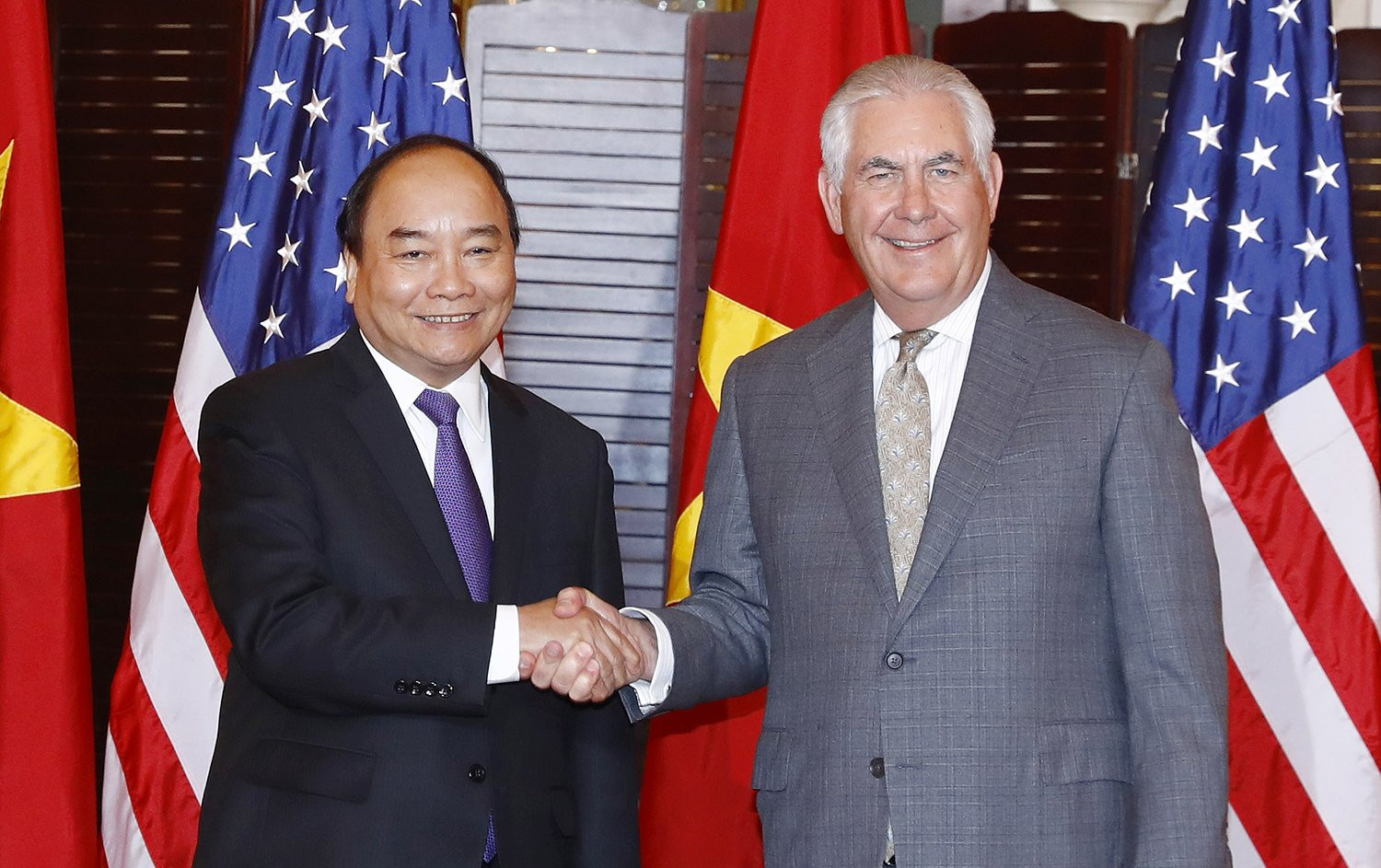 Thủ tướng Nguyễn Xuân Phúc và Bộ trưởng Bộ Ngoại giao Mỹ Rex Tillerson. (Ảnh: VGP)