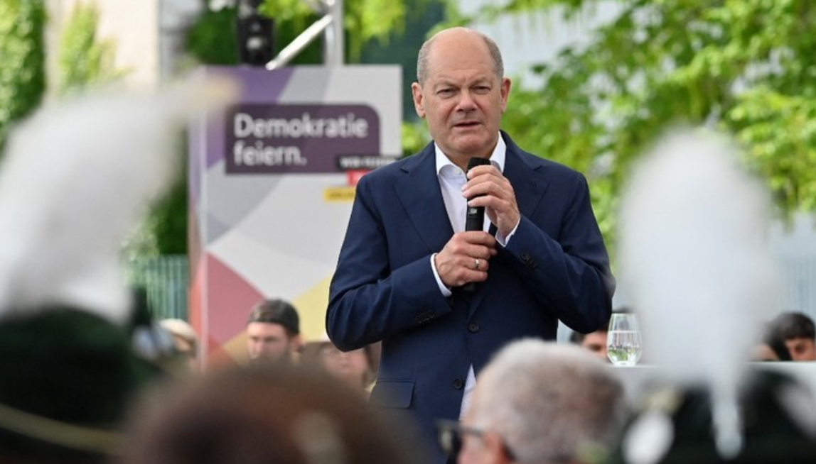 Thủ tướng Đức Olaf Scholz phát biểu trước công chúng ở Berlin, Đức, ngày 24/5. (Ảnh: RT)