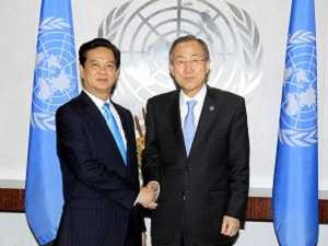 Thủ tướng Nguyễn Tấn Dũngkhẳng định, Việt Nam luôn nỗ lực tham gia kiến tạo hòa bình, xóa đóigiảm nghèo, bảo vệ hành tinh của chúng ta. Việt Nam đã sẵn sàng thamgia các hoạt động gìn giữ hòa bình của LHQ. Việt Nam sẵn lòng đóng gópnguồn lực, dù còn nhỏ bé, như sự tri ân đối với bạn bè quốc tế đã giúpchúng tôi dành và giữ độc lập, thống nhất đất nước, thoát khỏi đóinghèo. Việt Nam đã và sẽ mãi mãi là một đối tác tin cậy, một thành viêncó trách nhiệm của cộng đồng quốc tế.