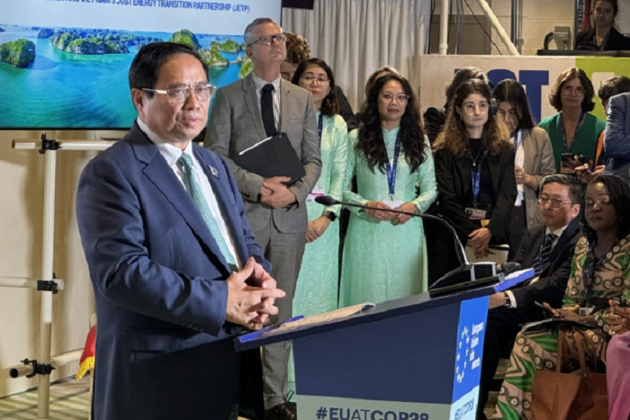 Chiều 1/12 (giờ địa phương), tại Dubai, nhân dịp Hội nghị Thượng đỉnh hành động khí hậu thế giới trong khuôn khổ Hội nghị lần thứ 28 các bên tham gia Công ước khung của Liên hợp quốc về biến đổi khí hậu (COP28), Thủ tướng Phạm Minh Chính dự Lễ công bố Kế hoạch huy động nguồn lực thực hiện Tuyên bố chính trị thiết lập quan hệ đối tác chuyển đổi năng lượng công bằng (JETP) cùng với Nhóm các đối tác quốc tế, gồm Liên minh châu Âu (EU), Vương quốc Anh và Bắc Ireland, Hoa Kỳ, Nhật Bản, Đức, Pháp, Italy, Canada, Đan Mạch và Na Uy (viết tắt là IPG).