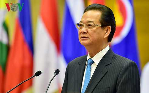Thủ tướng Nguyễn Tấn Dũng nhấn mạnh: “Chúng ta vui mừng và tự hào về thành công của ASEAN, đồng thời nhận thức sâu sắc rằng tình hình khu vực đang diễn biến rất phức tạp, nhất là ở Biển Đông. Là quốc gia thành viên tích cực và trách nhiệm của Cộng đồng ASEAN, Việt Nam kiên quyết bảo vệ chủ quyền và lợi ích chính đáng của mình, đồng thời luôn kiên trì chủ trương giải quyết những tranh chấp, bất đồng bằng biện pháp hòa bình trên cơ sở các nguyên tắc cơ bản của luật pháp quốc tế, Hiến chương Liên Hợp Quốc, Công ước Liên Hợp Quốc về Luật Biển năm 1982, phản đối sử dụng vũ lực và đe dọa sử dụng vũ lực, phản đối việc quân sự hóa và các hoạt động đơn phương tại Biển Đông, làm thay đổi hiện trạng, đe dọa an ninh, an toàn hàng hải hàng không, vi phạm luật pháp quốc tế, làm gia tăng căng thẳng, xói mòn lòng tin, tạo những hệ lụy nghiêm trọng và lâu dài, ảnh hưởng đến hòa bình, an ninh, ổn định ở khu vực”.