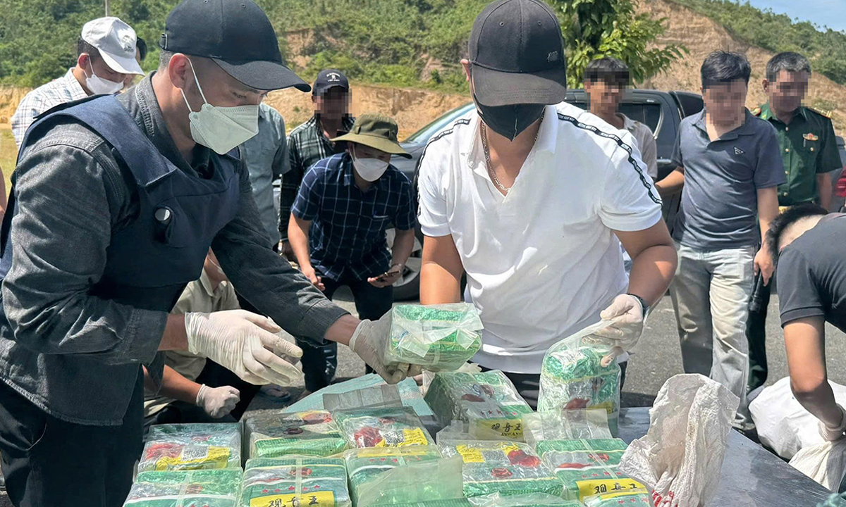 Lực lượng chức năng Ban chuyên án QB525 kiểm tra số ma túy bị thu giữ. (Ảnh: Báo Quân đội Nhân dân)