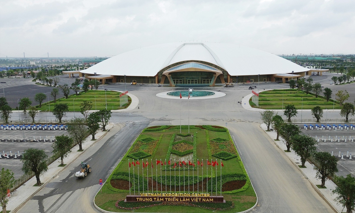 Trung tâm Triển lãm Việt Nam (xã Đông Anh, Hà Nội) là điểm cầu trung tâm của Lễ khánh thành, khởi công các dự án, công trình chào mừng kỷ niệm 80 năm ngày Quốc khánh. (Ảnh: TTXVN)