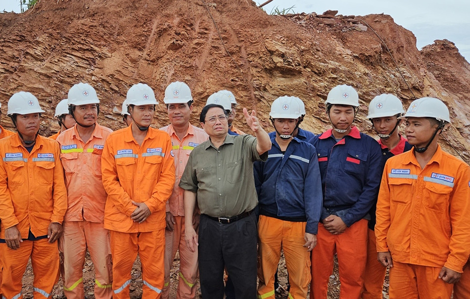 Thủ tướng đi kiểm tra, thăm, động viên công nhân thi công tại các Dự án đường dây 500kV mạch 3 Quảng Trạch - Phố Nối tại tỉnh Nghệ An.