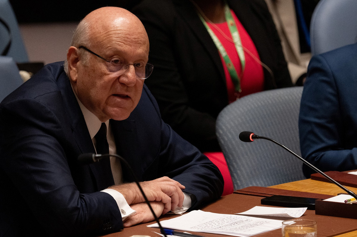 Thủ tướng Lebanon Najib Mikati phát biểu tại cuộc họp của Hội đồng Bảo an Liên hợp quốc về tình hình leo thang căng thẳng ở Lebanon giữa Israel và Hezbollah. (Ảnh: Reuters)