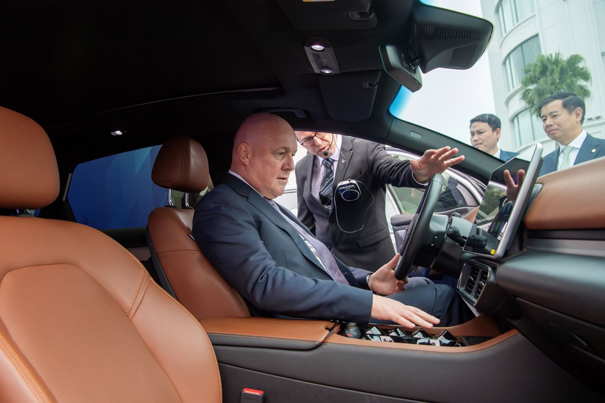 Thủ tướng Christopher Luxon trải nghiệm các sản phẩm của VinFast.