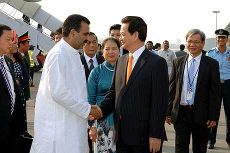 Đón Thủ tướng Nguyễn Tấn Dũng và đoàn tại sân bay Palam có Quốc vụ khanh Bộ Nông nghiệp Ấn Độ Sanjeev Kumar Balyan, Vụ trưởng Vụ Lễ tân-Bộ Ngoại giao Ấn Độ Jaideep Mazumdar và cán bộ Đại sứ quán Việt Nam tại Ấn Độ.