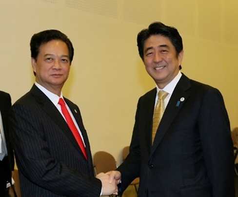 | Thủ tướng Nguyễn Tấn Dũng và Thủ tướng Nhật Bản Shinzo Abe. Ảnh VGP/Nhật Bắc |