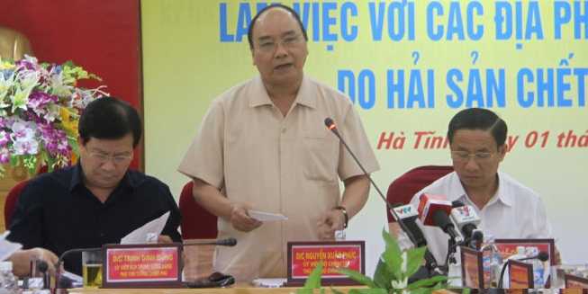 Chiều 1/5, tại trụ sở UBND tỉnh Hà Tĩnh, Thủ tướng Nguyễn Xuân Phúc và lãnh đạo các bộ, ngành trung ương đã làm việc với lãnh đạo các địa phương để tìm biện pháp khắc phục hiện tượng cá chết.