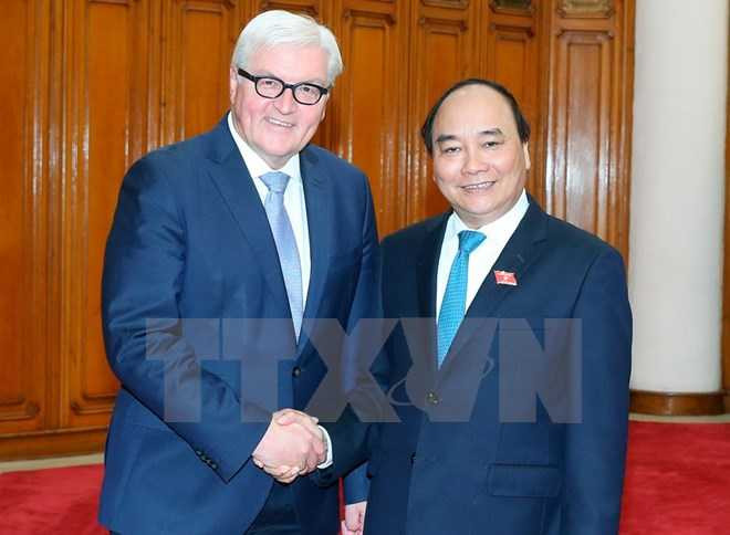 Thủ tướng Nguyễn Xuân Phúc tiếp Bộ trưởng Ngoại giao Đức Frank Waler Steinmeier đang ở thăm chính thức Việt Nam. (Ảnh: Thống Nhất/TTXVN)