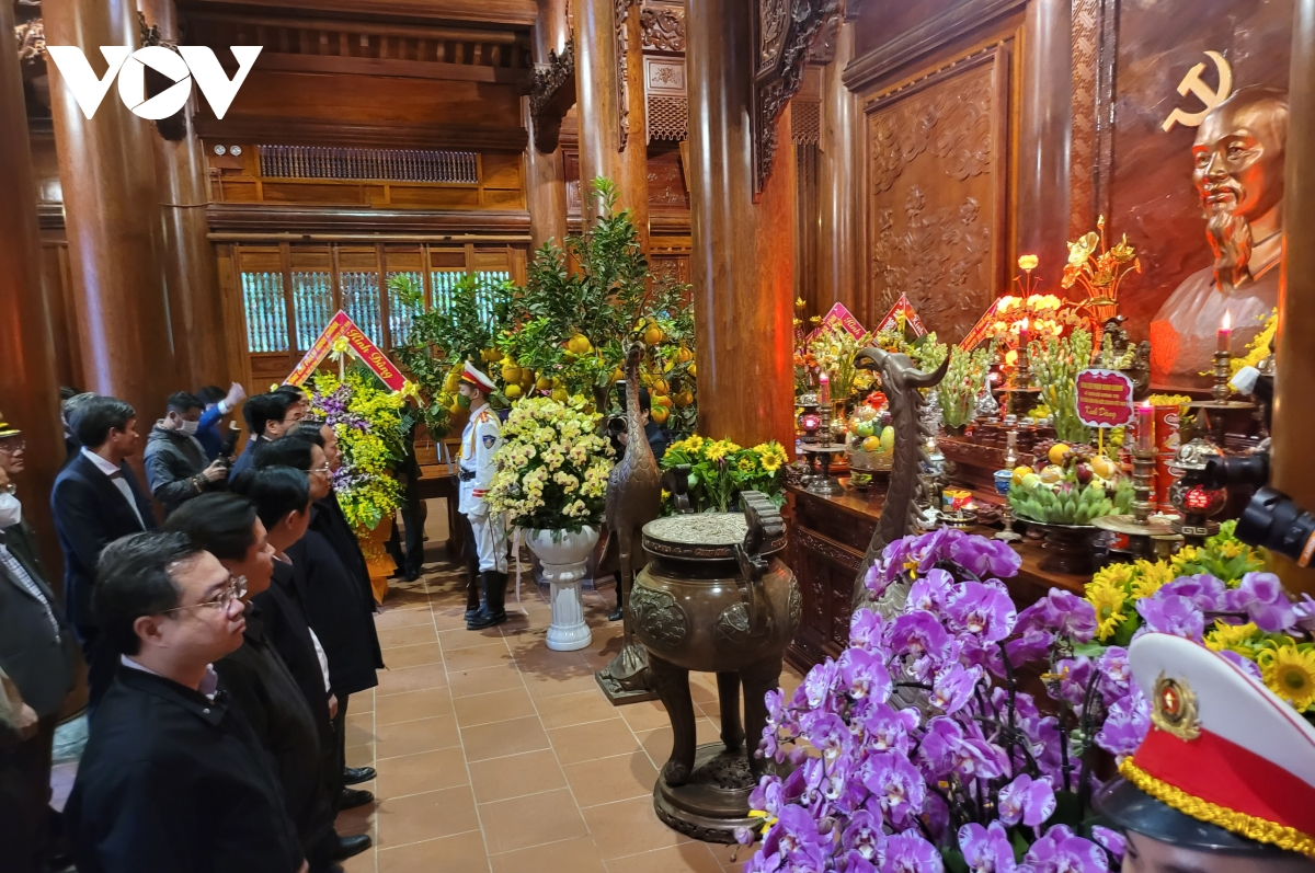 Tại Khu di tích Quốc gia đặc biệt Kim Liên, trong không khí trang nghiêm Thủ tướng Phạm Minh Chính cùng đoàn đại biểu dâng hương tưởng niệm, bày tỏ lòng thành kính và biết ơn vô hạn công lao to lớn của Chủ tịch Hồ Chí Minh - Người đã cống hiến, hy sinh trọn đời cho sự nghiệp giải phóng dân tộc, giải phóng giai cấp, đấu tranh cho sự nghiệp hòa bình và hạnh phúc của dân tộc Việt Nam và nhân dân trên thế giới.