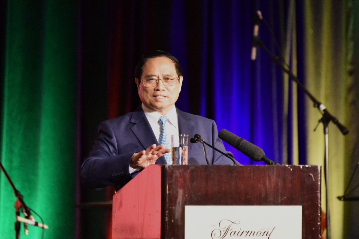 Bày tỏ vui mừng được gặp lại cộng đồng người Việt Nam tại San Francisco và các vùng lân cận sau hơn 1 năm 4 tháng, Thủ tướng Chính phủ Phạm Minh Chính gửi lời thăm hỏi của Tổng Bí thư Nguyễn Phú Trọng và các đồng chí lãnh đạo Đảng, Nhà nước Việt Nam tới kiều bào.