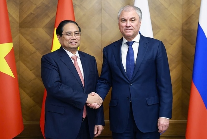 Chào mừng Thủ tướng Phạm Minh Chính và đoàn đại biểu cấp cao Việt Nam, Chủ tịch Duma Quốc gia Nga Vyacheslav Volodin khẳng định, Nga coi Việt Nam là bạn bè lâu đời, một đối tác quan trọng hàng đầu ở khu vực châu Á - Thái Bình Dương; các nghị sĩ trong Duma Quốc gia Nga, dù đến từ nhiều đảng phái khác nhau, đều có ấn tượng tốt đẹp, ủng hộ thúc đẩy quan hệ Đối tác chiến lược toàn diện với Việt Nam. Chủ tịch Duma Quốc gia Nga khẳng định, sẵn sàng phối hợp với phía Việt Nam, triển khai các thỏa thuận cấp cao, đưa quan hệ Đối tác chiến lược toàn diện Việt Nam - Nga ngày càng đi vào chiều sâu, thực chất và hiệu quả.