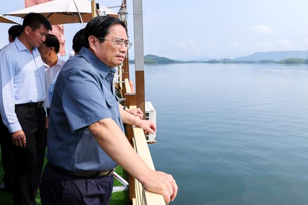 Thủ tướng khảo sát khu du lịch hồ Thác Bà. (Ảnh: VGP/Nhật Bắc)