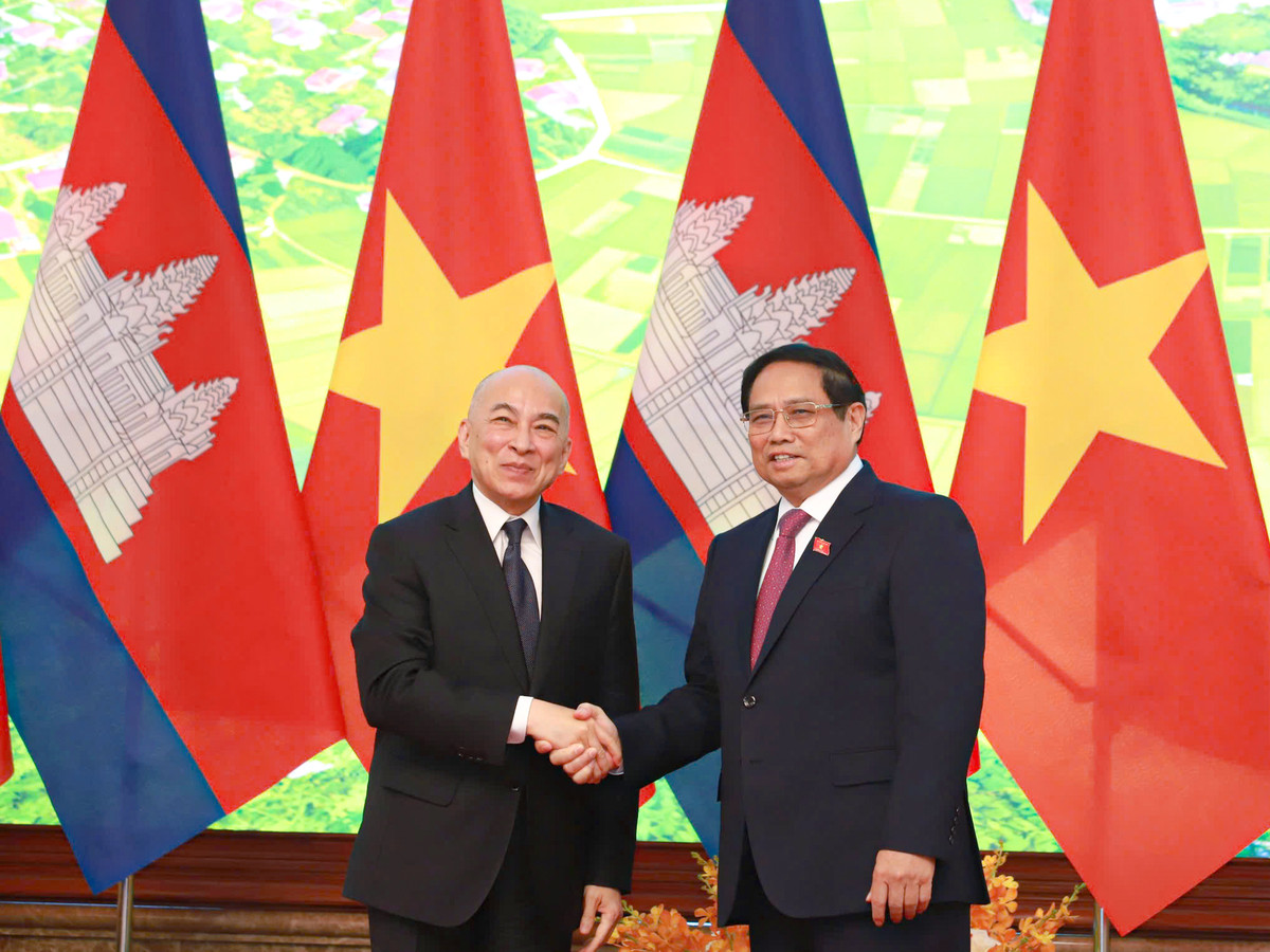 Thủ tướng Phạm Minh Chính tiếp kiến Quốc vương Campuchia Norodom Sihamoni.