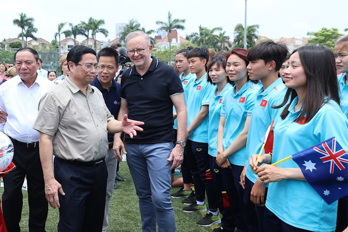 Chia sẻ tại cuộc gặp, Thủ tướng Australia Anthony Albanese chúc đội tuyển bóng đá nữ Việt Nam thi đấu ấn tượng trong lần đầu tiên tham dự World Cup.