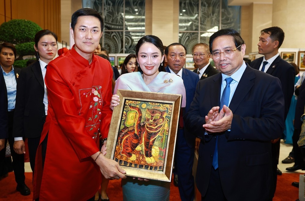 Chiều tối 15/5, tại Trụ sở Chính phủ, Thủ tướng Phạm Minh Chính cùng Thủ tướng Paetongtarn Shinawatra đã tham quan, trải nghiệm các sản phẩm thủ công mỹ nghệ đặc sắc của Việt Nam và trưng bày ảnh Việt Nam - Thái Lan.