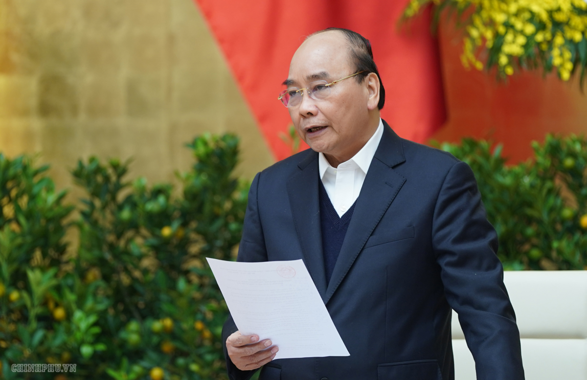 Thủ tướng Nguyễn Xuân Phủ chủ trì họp Thường trực Chính phủ về phòng chống dịch Covid-19. (Ảnh: VGP)