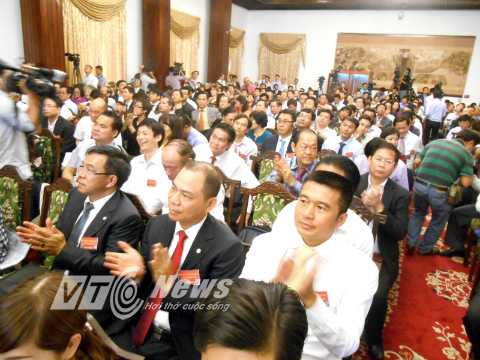 Nhiều tiếng vỗ tay vang lên khắp hội trường khi Thủ tướng nhấn mạnh: "Tại hội nghị lần này, tôi khẳng định đường lối Đảng Cộng sản việt Nam, Chính phủ Việt Nam coi doanh nghiệp tư nhân là động lực để phát triển kinh tế".