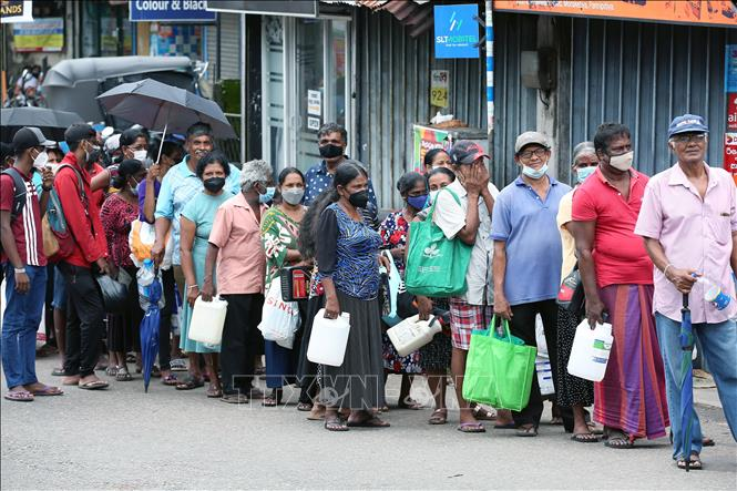 Người dân xếp hàng chờ mua nhiên liệu để đun nấu tại Colombo, Sri Lanka, ngày 17/6/2022. (Ảnh: THX/TTXVN)