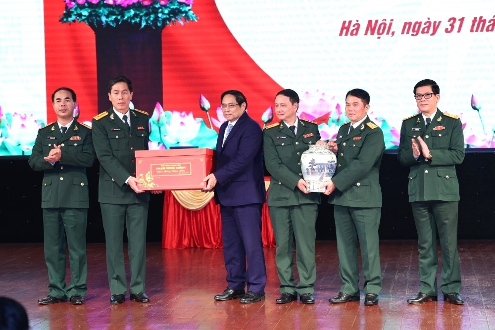 Thay mặt lãnh đạo Đảng, Nhà nước, Thủ tướng biểu dương, ghi nhận và nhiệt liệt chúc mừng những thành tích, cống hiến, đóng góp của đội ngũ các nhà văn hóa, văn nghệ sĩ Quân đội; các thế hệ cán bộ, giảng viên, học viên, nhân viên, chiến sĩ của Nhà trường. Thủ tướng mong muốn Nhà trường năm 2024 đạt kết quả cao hơn năm 2023, giai đoạn sau cao hơn giai đoạn trước.