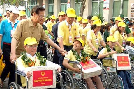 | Thủ tướng Nguyễn Tấn Dũng đi bộ từ thiện vì người khuyết tật. |