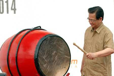 | Thủ tướng Nguyễn Tấn Dũng đánh trống khai mạc chương trình. |