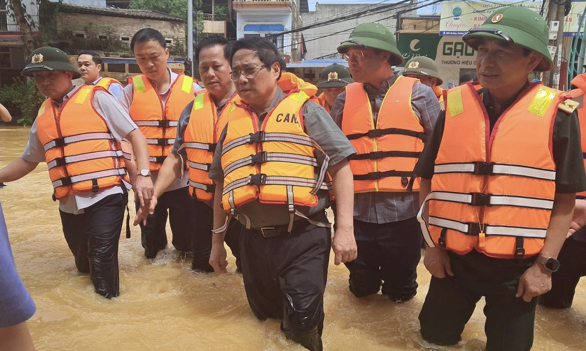 Trưa 8/10, Thủ tướng Phạm Minh Chính tới tỉnh Thái Nguyên, thị sát tình hình, thăm hỏi đời sống người dân, kiểm tra, động viên các lực lượng đang làm nhiệm vụ ứng phó mưa lũ, cứu hộ, cứu nạn, khắc phục hậu quả thiên tai. Cùng đi có Bộ trưởng Bộ Quốc phòng Phan Văn Giang.