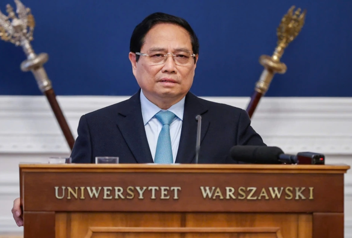 Bài phát biểu của Thủ tướng Phạm Minh Chính với chủ đề: “Đưa quan hệ Việt Nam - Ba Lan hướng tới tầm cao hơn, vì hòa bình và phát triển của hai khu vực Đông Nam Á và Trung Đông Âu”.