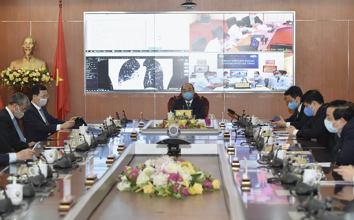 Sau khi chứng kiến các chuyên gia hội chẩn từ điểm cầu Bệnh viện Đại học Y Hà Nội dành cho bệnh nhân thông qua nền tảng hỗ trợ tư vấn khám chữa bệnh từ xa, từ điểm cầu Bộ TT&TT, Thủ tướng Nguyễn Xuân Phúc trò chuyện trực tuyến với bệnh nhân, động viên bệnh nhân 64 tuổi ở Hà Nội chiến thắng bệnh tật.