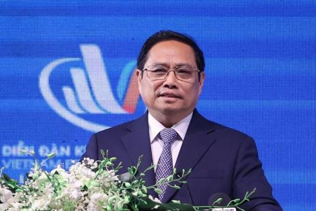 Thủ tướng Phạm Minh Chính phát biểu tại tọa đàm cấp cao của Diễn đàn Kinh tế Việt Nam lần thứ tư.