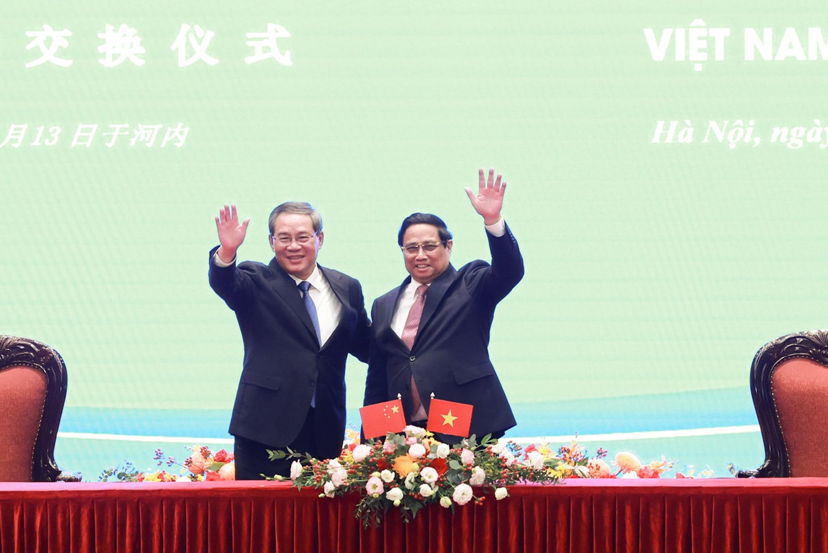 Thủ tướng Phạm Minh Chính và Thủ tướng Lý Cường chứng kiến trao Kế hoạch hành động giữa Tổng cục Hải quan Việt Nam và Tổng cục Hải quan Trung Quốc về thỏa thuận công nhận lẫn nhau về Chương trình Doanh nghiệp ưu tiên của Hải quan Việt Nam và Chương trình Quản lý tín nhiệm doanh nghiệp của Hải quan Trung Quốc.