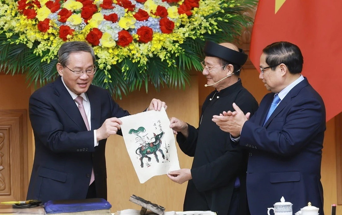 Nhân chuyến thăm chính thức Việt Nam của Thủ tướng Quốc vụ viện nước Cộng hòa Nhân dân Trung Hoa Lý Cường, chiều tối 13/10, tại Trụ sở Chính phủ, Thủ tướng Phạm Minh Chính và Thủ tướng Trung Quốc Lý Cường cùng thưởng thức tranh Đông Hồ và tham quan trưng bày các sản phẩm nông nghiệp đặc sắc Việt Nam xuất khẩu sang Trung Quốc.