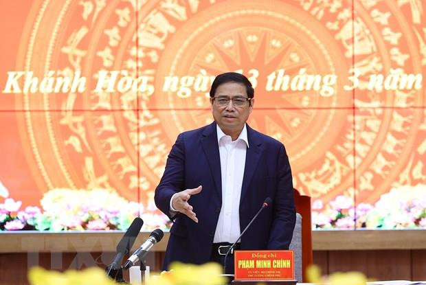 Thủ tướng Phạm Minh Chính phát biểu tại buổi làm việc với lãnh đạo chủ chốt tỉnh Khánh Hòa. (Ảnh: Dương Giang/TTXVN)