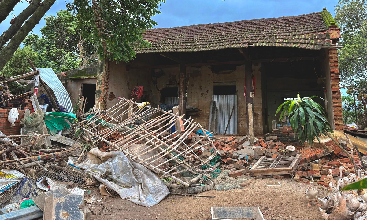 Hàng trăm ngôi nhà tại xã Hoà Thịnh (tỉnh Đắk Lắk) đổ sập, bị lũ cuốn trôi.