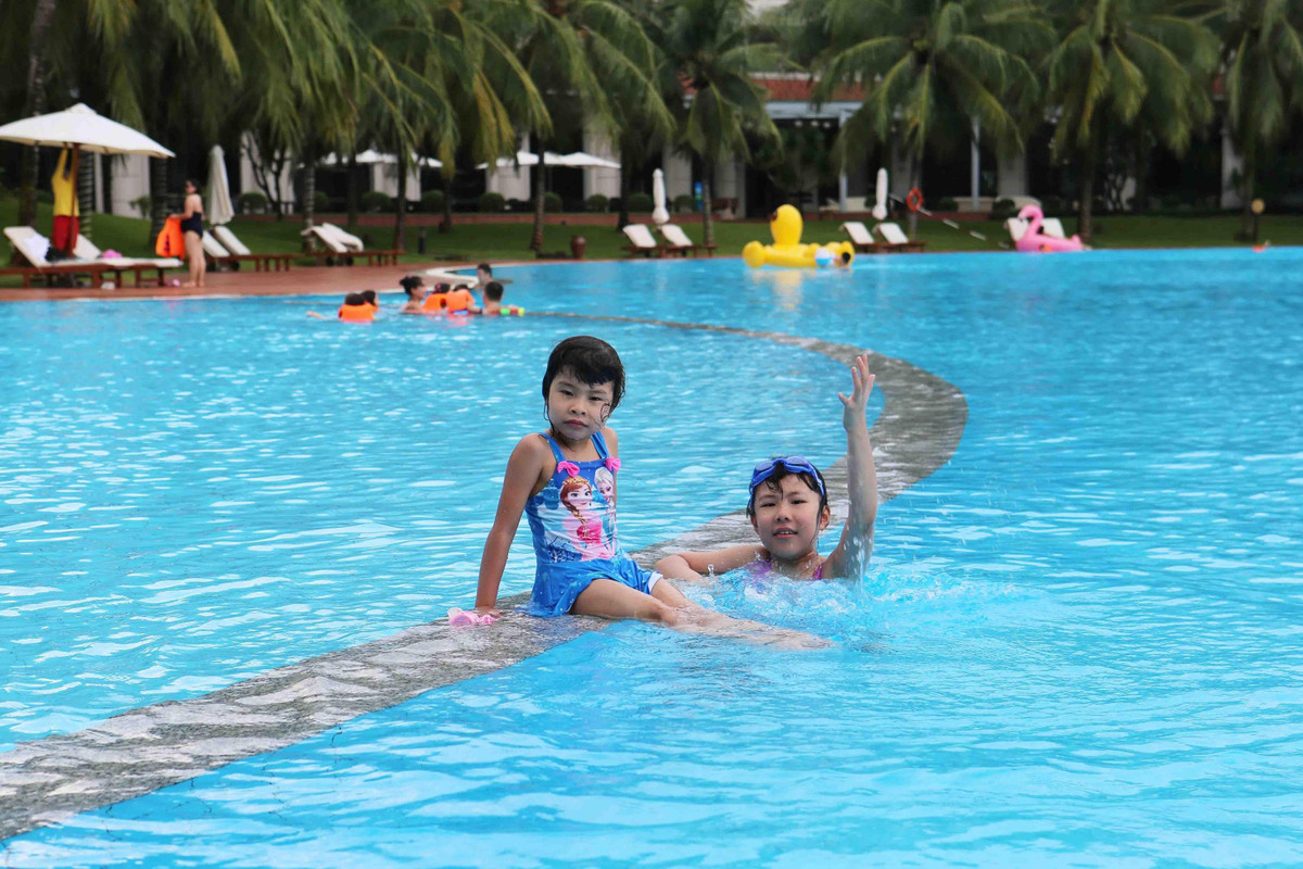 Dịp lễ 30/4 - 1/5, nhiều gia đình cho các con đi nghỉ ở các vùng biển, có hồ bơi giải tỏa nắng nóng