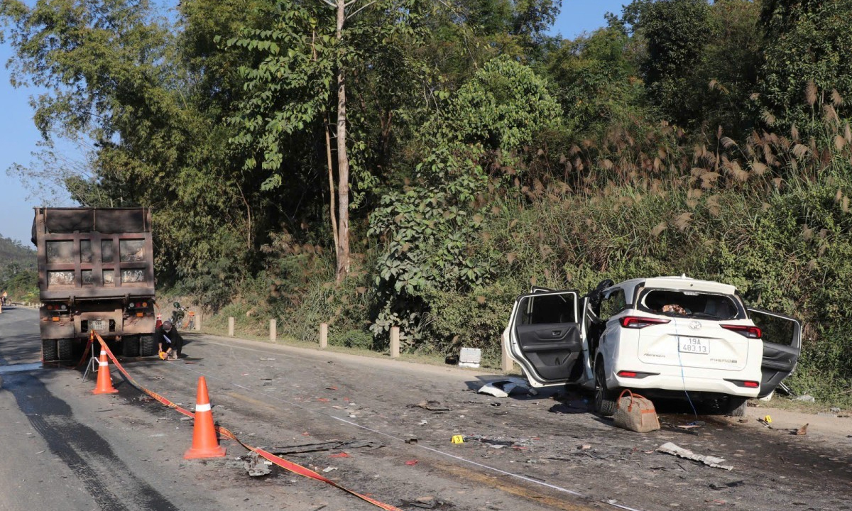 Cú va chạm mạnh khiến xe 7 chỗ biến dạng, 4 người P.V.K, T.T.L, N.Đ.V và N.T.U.S tử vong tại chỗ.