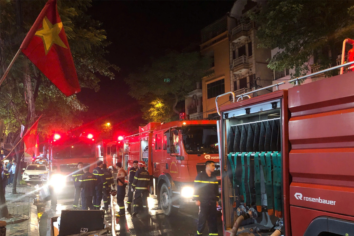Lực lượng chức năng có mặt tại hiện trường vụ cháy ở phường Bưởi (quận Tây Hồ, Hà Nội) hôm 25/8.