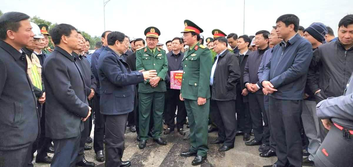 Thăm hỏi, chúc Tết cán bộ, công nhân đang thi công trên công trường, Thủ tướng yêu cầu các nhà thầu tranh thủ thời tiết thuận lợi thi công "3 ca, 4 kíp", bảo đảm an toàn, tiến độ, chất lượng, không đội giá, không để xảy ra tham nhũng, tiêu cực. Ấn tượng với việc các nhà thầu thi công bảo đảm chất lượng tại đoạn tuyến này, Thủ tướng đề nghị chủ đầu tư cần giao thêm việc cho các nhà thầu thuộc Quân đội.